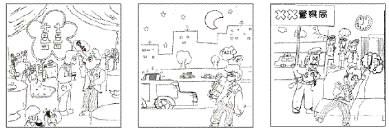 When he opened his eyes again, he found himself in the police station. To his dismay, he didn´t remember what he had done yesterday. A policeman came up to him and scolded him angrily. He was too embarrassed to look up at him. He really learned a lesson from the impressing mistake.